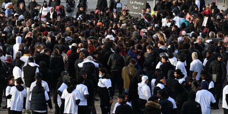Une manifestation a eu lieu à Nanterre, en France, le 19 novembre 2023, à la mémoire de Nahel, un adolescent de 17 ans tué par un policier lors d’un contrôle routier le 27 juin 2023.