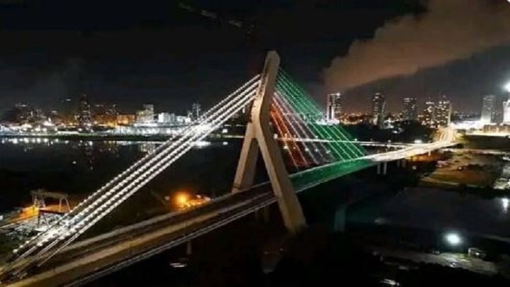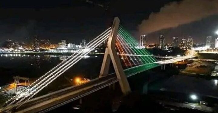 En adoptant et en reliant plusieurs quartiers, ce pont à haubans se dévoile avec éclat, exposant sa splendeur une fois la nuit tombée.