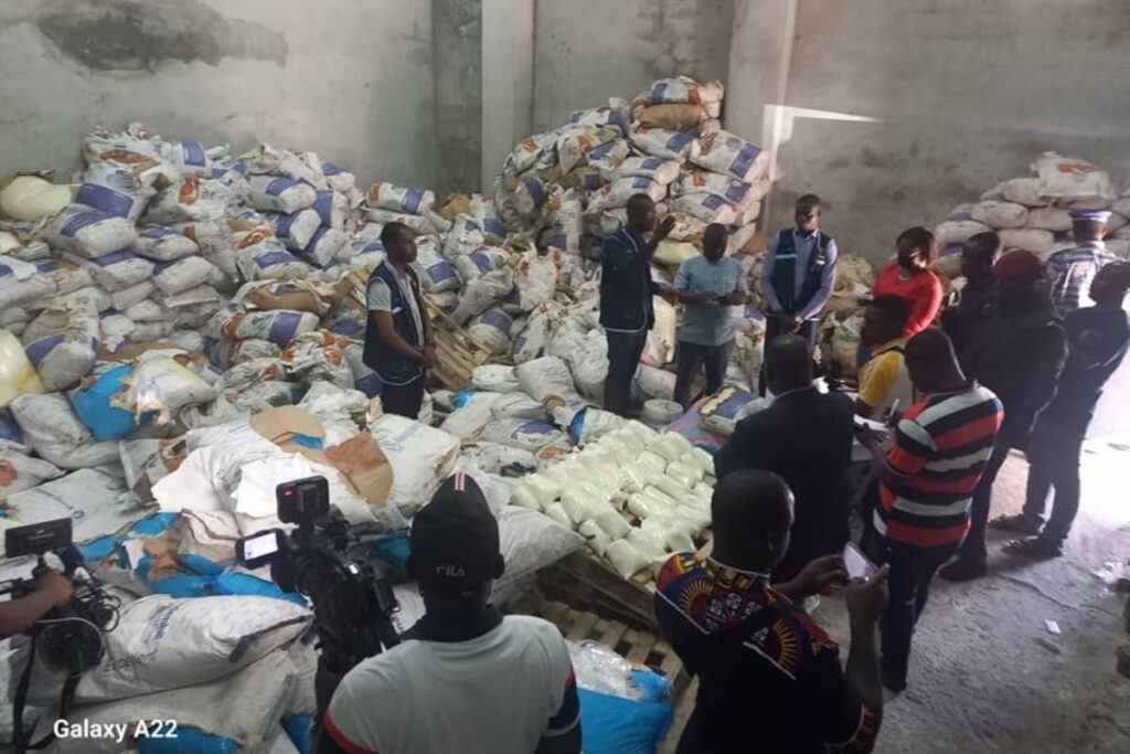 Le samedi 21 octobre 2023, la Brigade de contrôle rapide du ministère du Commerce a saisi 2500 sacs de lait de mauvaise qualité dans un magasin à Koumassi remblais.